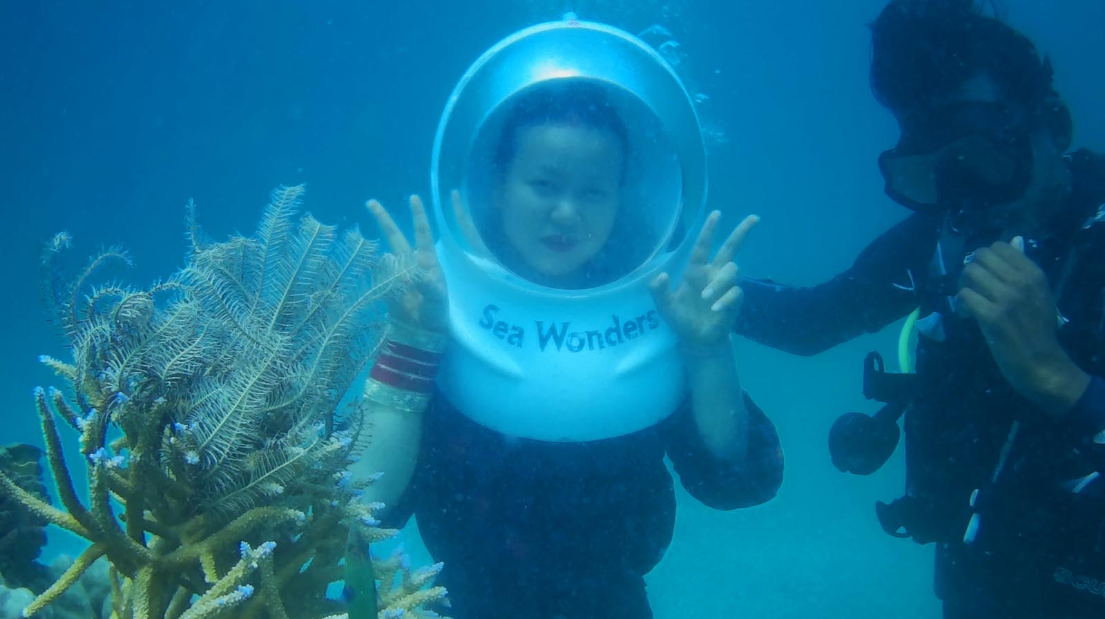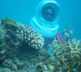 Walk on the sea bed with the beautiful corals and the colorful fishes swimming around you.